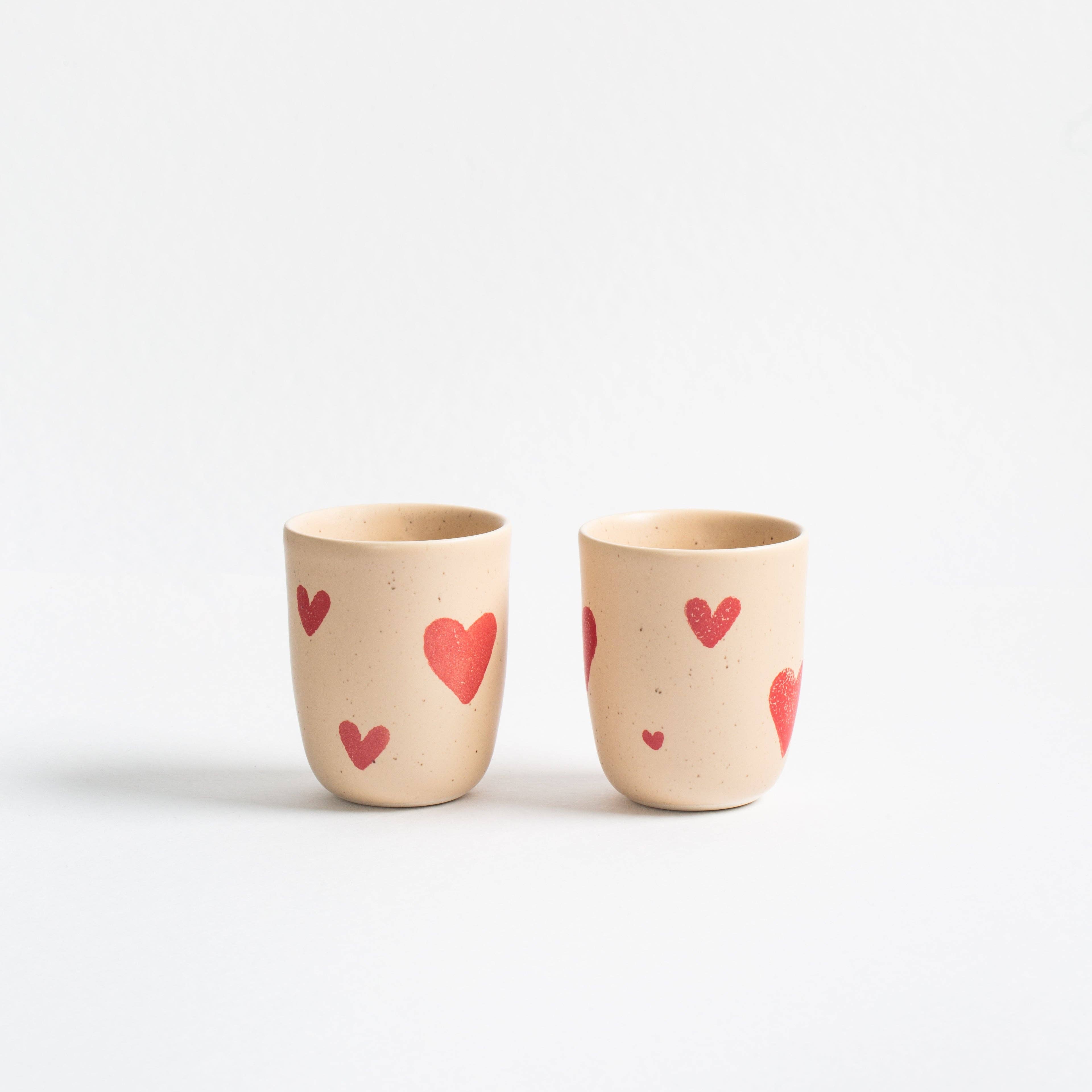 Mit einem sanften beigen Hintergrund und zarten roten Herzen bringt die Tasse eine Prise Gemütlichkeit in deine täglichen Rituale.