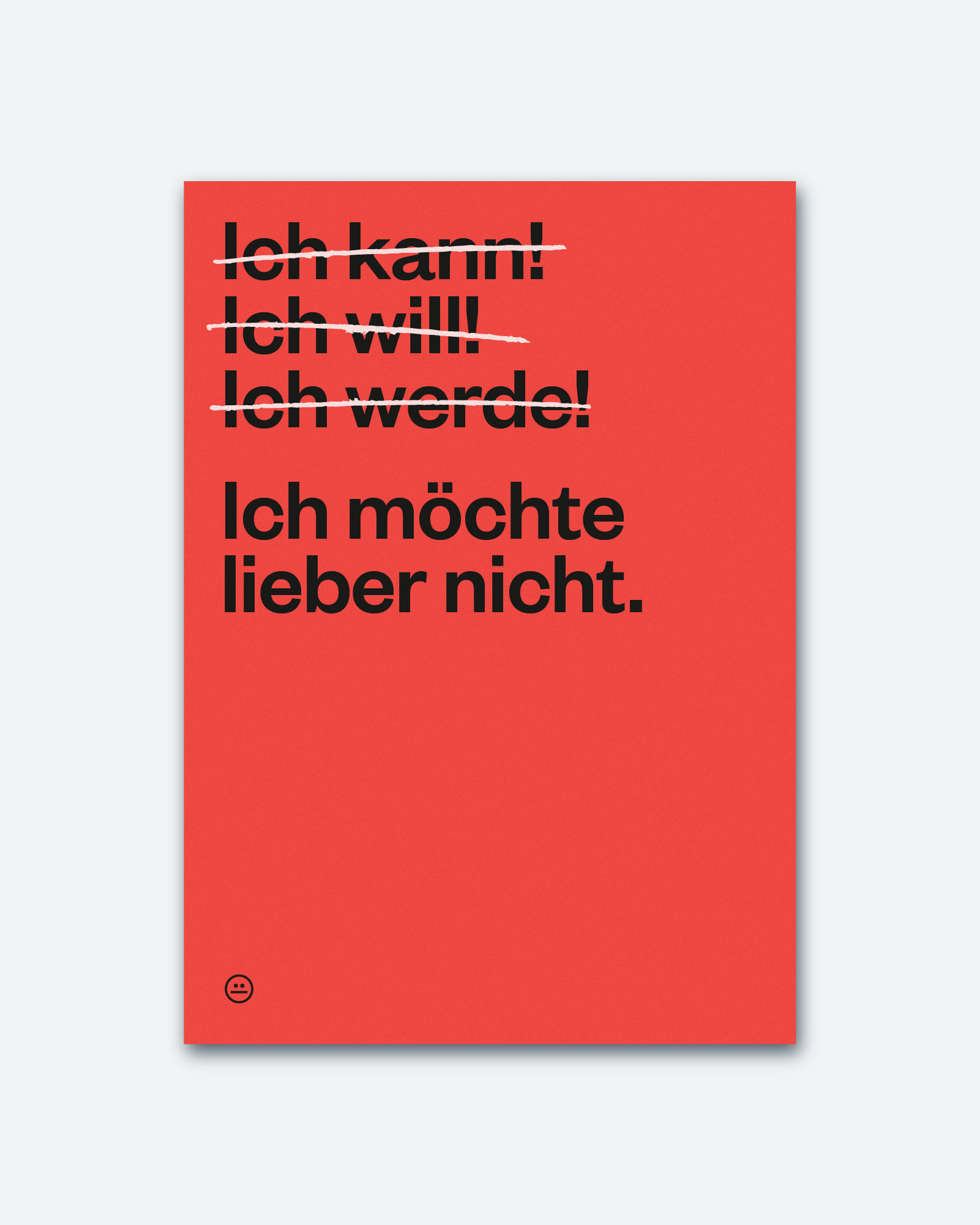 Motivation ist schön und gut – bis man genauer drüber nachdenkt. Warum sich stressen, wenn man auch einfach nicht kann, will und wird? Diese Karte ist das perfekte Manifest für alle, die sich bewusst gegen unnötigen Ehrgeiz entscheiden.