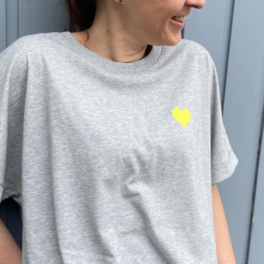 — T-Shirt Melange Grey, Print mit gelbem Herz